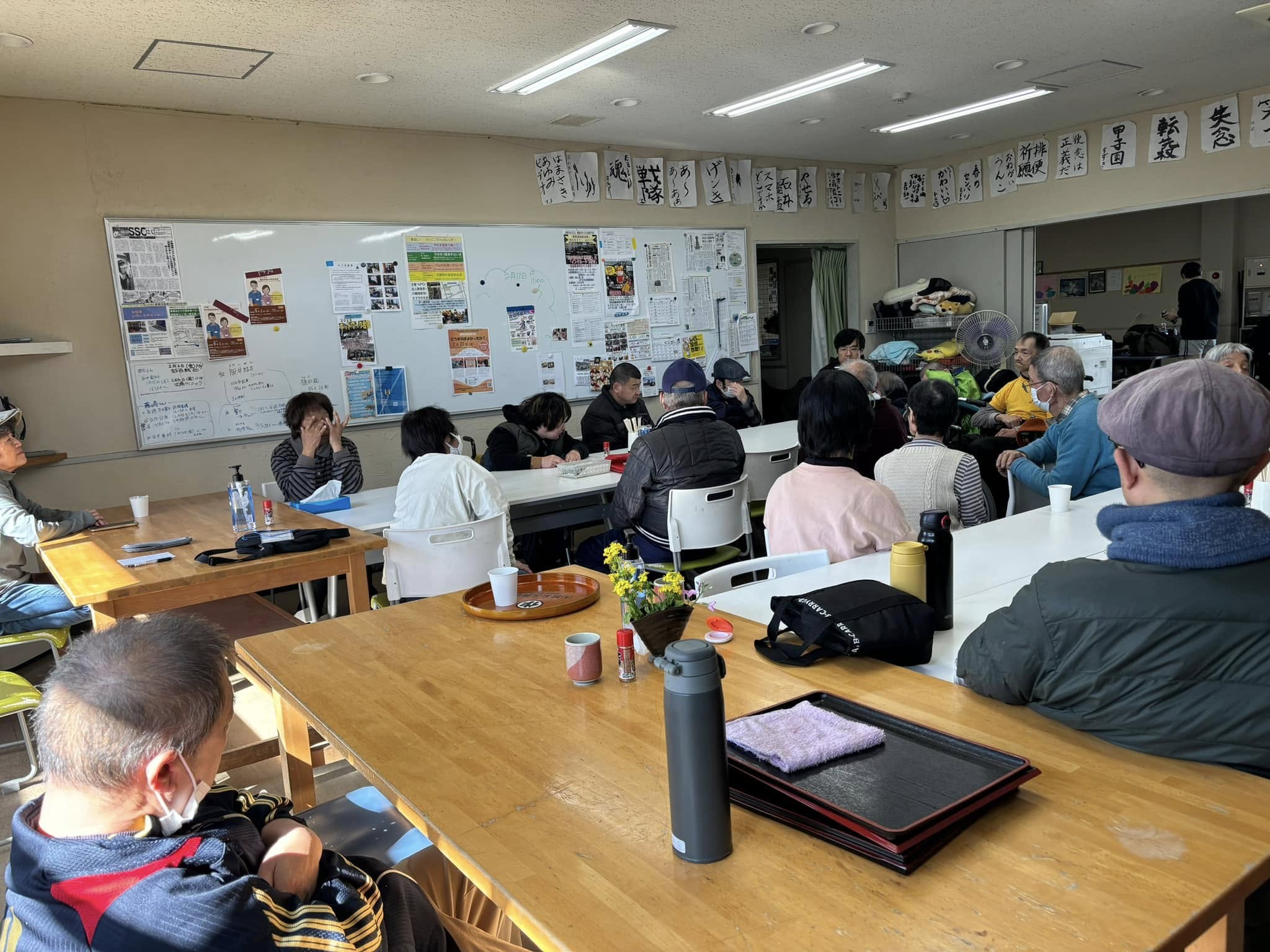℡:048-733-2743 2013年に、「(旧)デイケア・パタパタ」からリニューアルし、「ケアシステム・わら細工」と「(旧)ぶてぃっく・ぶあく」とともに「NPO法人 共に生きる街づくりセンター・かがし座」としてリスタートしました。外に出る活動が中心で、自立生活プログラムの「ぽぽんた」ほか数々のグループがあり、わらじの会のさまざまなイベントの企画などもしています。 |
