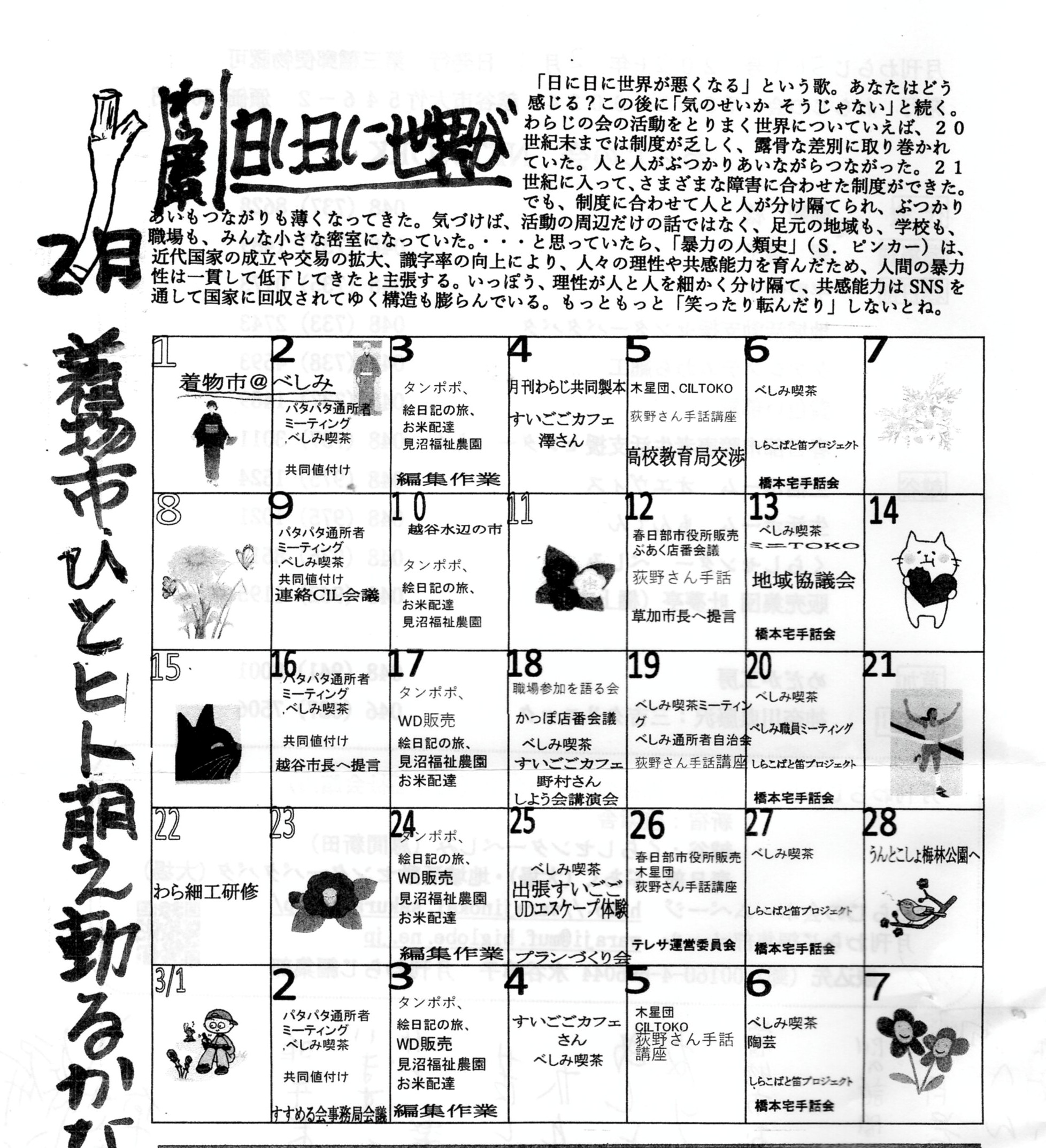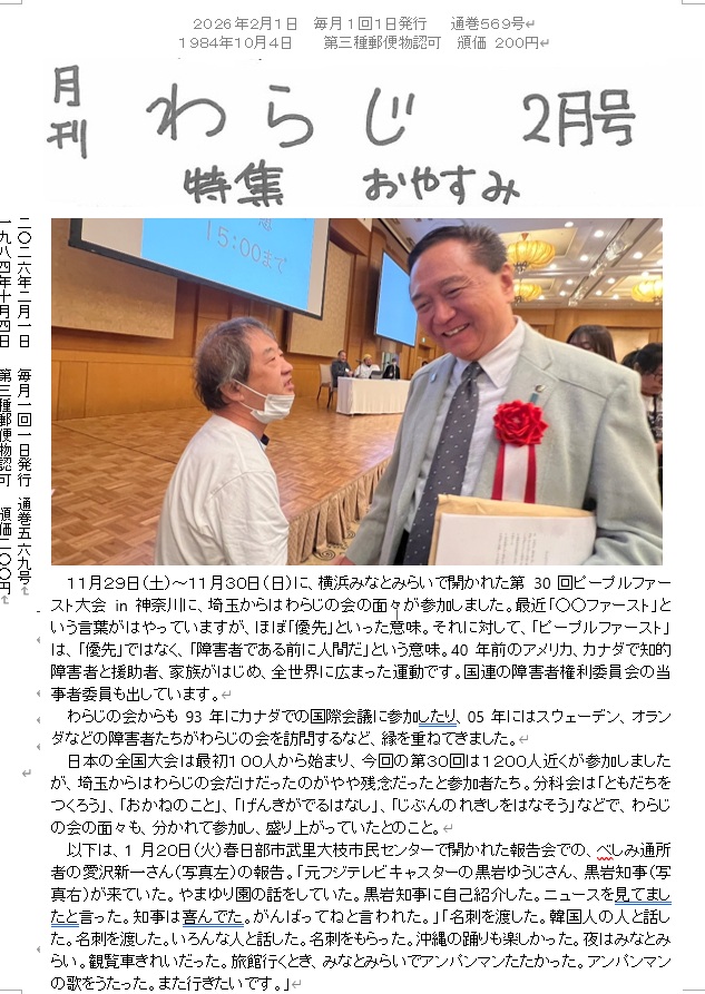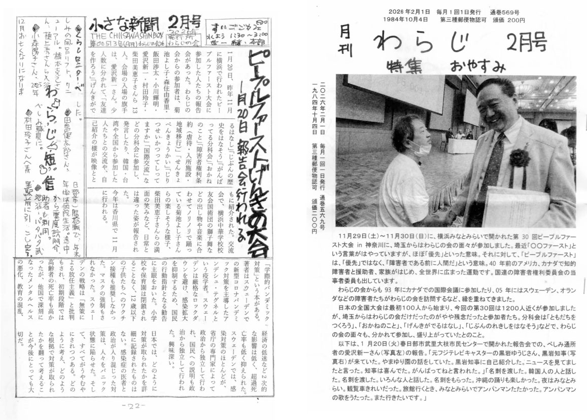 | 小さな新聞 | わらじの会の会報『月刊わらじ』に掲載されているものです! |