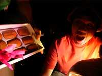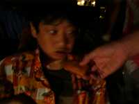 | 熱海秘宝館名物「子宝饅頭」。 まあいわゆる「へのこ」の形を しておるね。まあありていに言えば ち○ぽ型。 某職員の田○部さんが「喰えっ! 喰えっ!」と女性陣、次々血祭りに・・・。 あまつさえ昌弘家の長女あゆみまで 血祭られ・・・。 T「亀さんのお菓子だよ」 歩「目がないよ〜・・・」 田○部さん・・・あんた偉人だよ・・・。 |