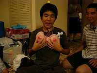 | その一 | おっぱいの先からプープー 息を吹き込むと頭上の風船が 膨らむといういわゆるパーティ ーグッズ。 大不評の上勝敗の決めようが なく、結果装着するだけとなり 更に不評であった・・・。 |